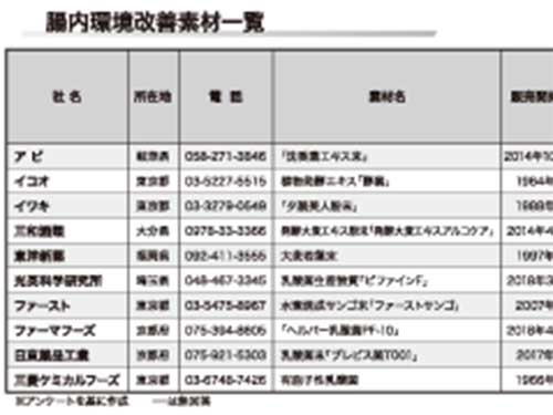 健康のためには、腸内環境を改善すべし─。こうした考えは、もはや常識化してきているといってよいだろう。乳酸菌関連などを筆頭に、腸内環境を改善する素材の人気が、ここ数年大きく高まっている。さらに、近年は、「痩せ菌」「デブ菌」にも注目が集まっている。これまでの研究成果からは、痩せ型の人に多い腸内細菌と、太った人に多い腸内細菌には差異があることが分かっており、「痩せ菌」を増やし、「デブ菌」を減らすサプリの人気が高まっている。腸内環境改善に役立つ素材を紹介する。
