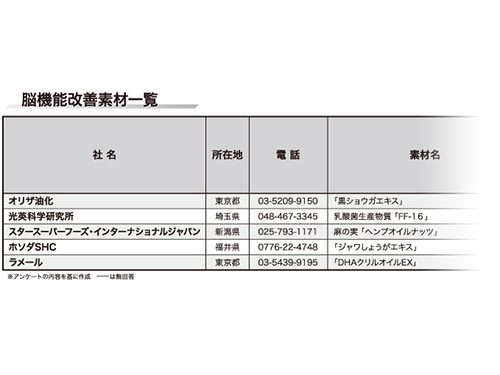 「脳機能」は、機能性表示食品制度の発足によって最も恩恵を受けたジャンルの一つだ。機能性表示の内容に「脳」という文字を織り込んだ機能性表示食品の届け出は20件受理されており、「認知」は118件、「認識」は10件、「記憶」は120件の受理実績がある(10月22日現在)。機能性表示食品にかかわらず「脳機能」系サプリ市場は盛り上がりを増しつつある。脳機能改善の実力派素材を紹介する。