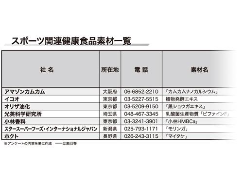 2020年に向けて、国民のスポーツ機運は高まっている。筋肉増強、スポーツパフォーマンス改善、抗疲労などをうたう、スポーツ用途のサプリにも注目が集まっている。市場に供給されるスポーツ対応素材の多様化も進んでおり、各社はエビデンスの蓄積を進めている。スポーツサプリを摂取するにあたっては、機能性もさることながら、「飲みやすさ」も大きな意味を持つ。機能性に優れたスポーツ素材や、飲みやすいスポーツサプリの開発に貢献できる加工会社などを紹介する。
