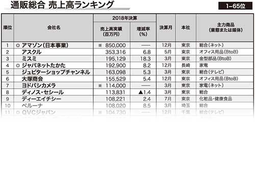 【通販・通教・EC 2018年 売上高ランキング】 〈上位400社 売上高調査〉優勝劣敗鮮明に/実質伸び率は9.4%