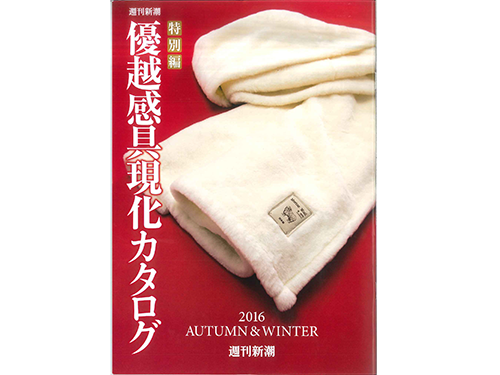 新潮社が年に3回発行する通販カタログ「優越感具現化カタログ」は、アパレル、雑貨、食品などを「世界の逸品」として取り扱う。「週刊新潮」の読者が主要顧客となっており、通販顧客の平均年齢は65歳。昨年9月に発行した秋冬号ではセーターの売れ行きが順調だった。