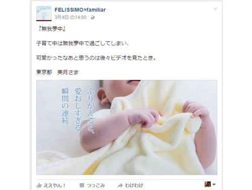 商品の説明を紹介するだけでなく、商品に込めた同社の思いやこだわりを紹介。すでに商品を愛用している顧客の体験談や子育て応援メッセージも掲載している。今後の出産や子育てに不安を持つ読者に役立つ内容にしている。