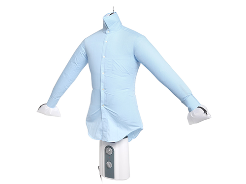 乾燥バッグは、胴体部分と腕部分がある人型を模している。これに洗濯したシャツを着せて、乾燥機をかけることで衣類を乾かす。温風のダイヤルを回すと、70〜80度の風が乾燥バッグを膨らませるため、シワのない仕上がりとなる。