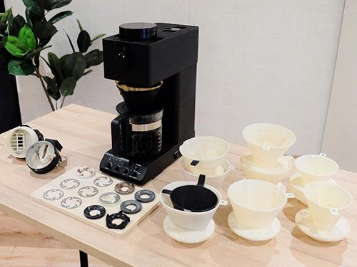 ひいたコーヒー豆をろ過するドリッパーは、1~3杯用のドリッパーと、4~6杯用のドリッパーの二つを用意。「こだわりの味を再現するのが、このコーヒーメーカーの最大の価値なので、それをしっかり再現する構造にするため」(同)杯数に合わせたドリッパーを用意した。