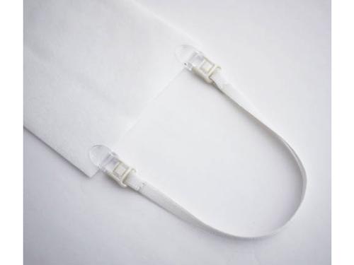 ストラップの色は、ホワイト、ブラック、ピンク、ブルーの4色展開。利用者に応じて、自分の好きな柄やキャラクターなどの生地と組み合わせて楽しめる。ストラップは日本製のゴムひもを使い、耳が痛くなりにくい平らなひもを使用している。伸縮性もあるため、男女問わず使用可能で、子ども用の短いサイズもある。