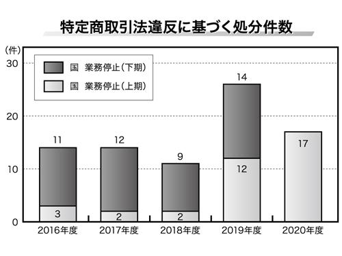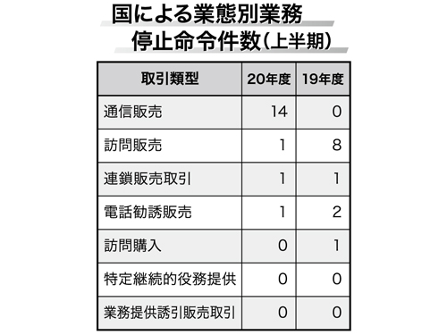 【ニュースの深層】□□102〈特商法 20年度上半期執行状況〉/業務停止命令が増加 17件中14件は通販