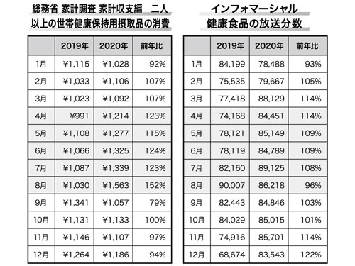 - 【インフォマーシャル〈出稿量データから見る商品戦略〉】第12回 家計調査「健康保持用摂取品」の消費増加との比較('21/04/01) (1718)