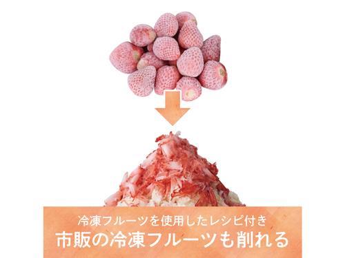 冷凍フルーツを削ることができる。「もともとは、フルーツを削ることを推奨していなかったが、20年に本体の刃をアップグレードして、フルーツのカットを実現させた」(同社)と説明する。