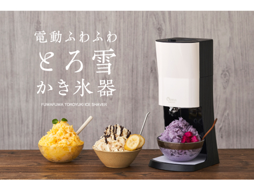 「電動ふわふわとろ雪かき氷器」(税込価格5478円)は、氷を削る刃の高さを調整でき、本格的なかき氷を作ることができる。