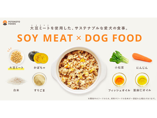 ドッグフードのサブスクや、ペットメディアの運営を行うPETOKOTO(ペトコト、本社東京都、大久保泰介社長)は22年春、大ヒットの「PETOKOTO FOODS」シリーズから新商品「SOY MEAT(ソイミート)」を発売する。大豆ミートを中心に、ヒューマングレードの新鮮な国産食材のみを使用。高タンパク低コレステロールのため、ダイエット中の愛犬にも最適なドッグフードだとしている。