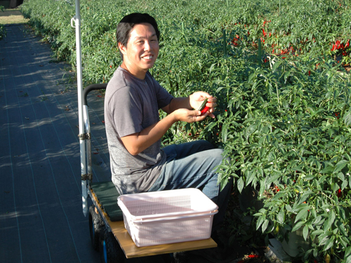 燃料油や工業用潤滑油の販売を行う鶴見油脂(本社神奈川県、石塚祐三社長)は05年、唐辛子通販の事業を開始、08年からは自社農園での唐辛子栽培も始めた。同事業の責任者であり、市原営業所所長を務める國分雅輝氏は現在、唐辛子の栽培と会社の総務の両方を担当している。メインは、千葉県市原市にある唐辛子農場での勤務だが、週に何日かは横浜の本社で事務仕事をしているという。