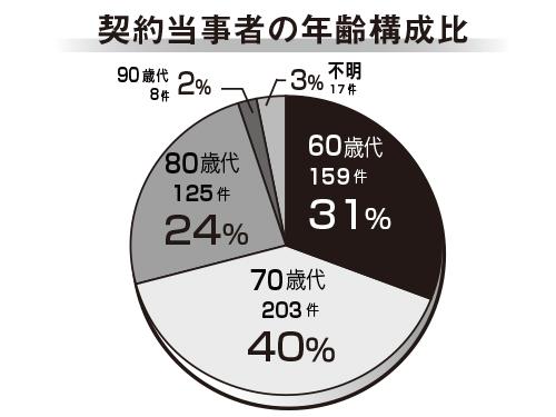 相談者の平均年齢は74・6歳。平均契約金額は483万9000円で、最高契約金額は5600万円だった。契約金額は前年に比べて約2倍に拡大しており、被害金額が高額化している。