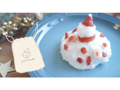 同商品は、ココグルメと同様に冷凍で届き、購入者自身が手作りする。ココグルメの上にクリームやいちごを乗せるなど、簡単な作業が多いため、子どもと一緒に作るのにも向いている。愛犬の特別な日にプレゼントをしたい、何かしてあげたいという気持ちをかなえてくれる商品だ。雪とサンタを思わせる可愛らしい見た目となっている。