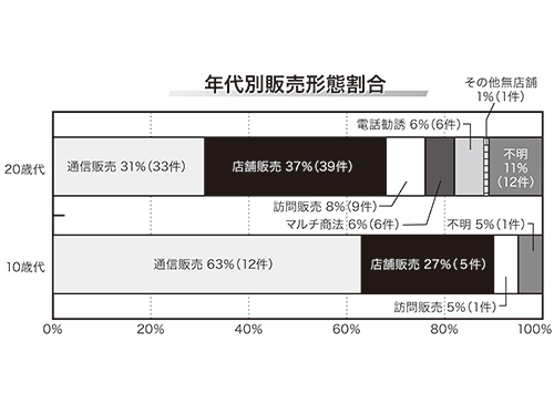 SNSによるネット広告やマッチングアプリを端緒とした消費生活相談が増えている。このほど、東京都が公表した特別相談「若者のトラブル110番」によると、10代の相談のうち6割を通販の相談が占めた。訪販・NBでは、SNS広告などをきっかけに、情報商材のマルチ商法に加入した事例も目立ったという。今年4月1日から、成年年齢が18歳に引き下げられ、若者の消費者トラブルが懸念されている。「副業」への関心が高まる中、SNSを通じた広告や勧誘行為には注意が必要だ。