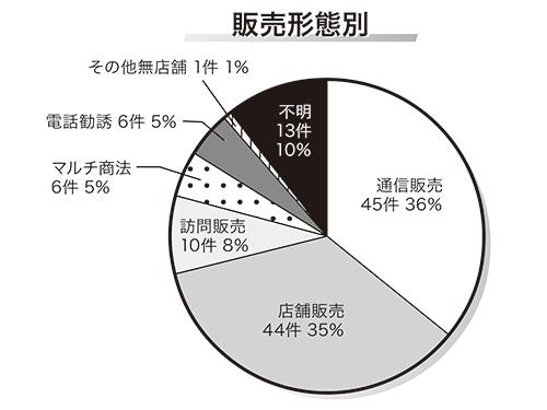 内訳をみると、「通販」が45件と最も多く全体の36%を占めた。内容は、有名百貨店などの「ロゴ」を使った偽通販サイトが目立つ。「閉店セール」と記し、有名ブランドの時計の本物の写真などを掲載して販売する。購入すると偽物が届くというトラブルだ。