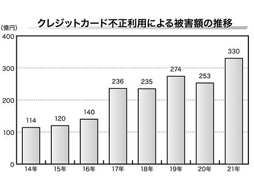 - 【ニュースの深層】□□116〈日本クレジット協会 21年は330億円超〉 個人情報漏洩事案続出も影響か (2022年4月14日号)('22/04/14) (1766)