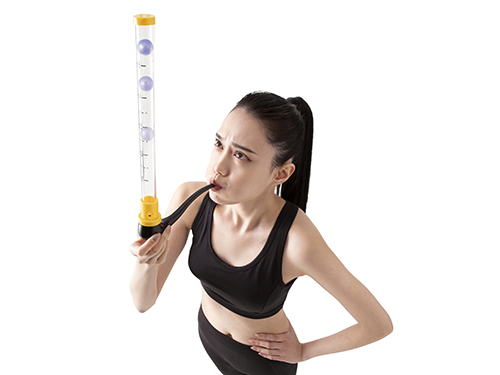 見た目はおもちゃのようだが、実際に息を吹いてみると、想像以上に呼吸の負荷がかかり、本格的なトレーニングにつながる。1日10回の吹きが目安のため、少ない時間で手軽にエクササイズができる。
