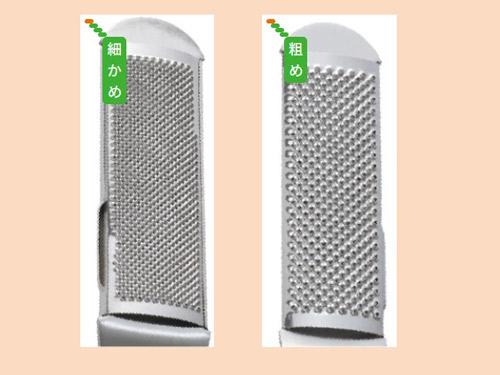 独自開発の「フジツボ型メタル・クラウン・ブレード」を搭載し、不要な角質を粉状にしてこそぎ取る。刃は両面仕様で、粗めは323個、細か目は696個のクラウンを配列している。