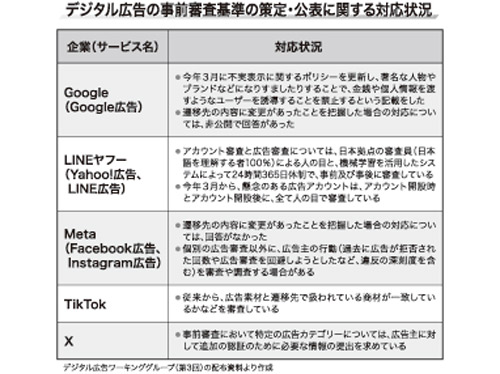 これを受け、総務省は今年6月21日、メタ、グーグル、LINEヤフー、TikTok、Xに対し、広告出稿時の事前審査や偽広告の削除といった対応を要請した。