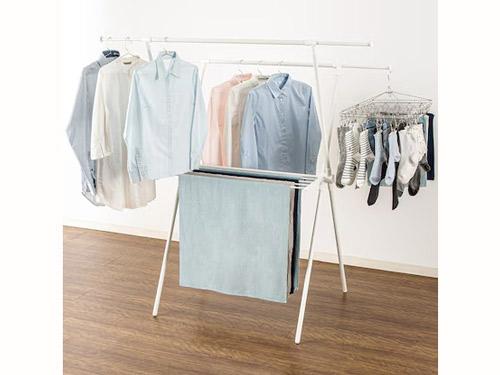 昨年末、ニトリが販売する室内用洗濯物干しスタンド「伸縮X型物干し」を購入した。シンプルなデザインと衣類をたくさん干しても安定している点が気に入っている。筆者は通販の利用にかなり不慣れであるが、イメージ通りの商品が届いたことにも満足している。