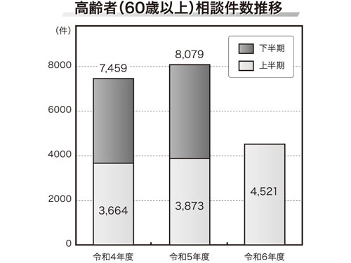 東京都がこのほど発表した24年4―9月期(上半期)の相談件数は1万3830件で、前年同期比6.7%増(868件増)となった。契約当事者の年代別では、70代以上が同23.9%増(555件増)、60代が同6.0%増(93件増)と高齢者の増加率が目立った。とくに通販の定期購入に関する相談が止まる傾向になく、法改正も検討されている中、業界内でトラブルを未然に防止することが求められる。
