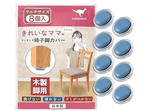 椅子脚カバーは8個入りで販売価格は楽天市場店で税込1298円。「脱げない!破れない!ゴミがつかない!」をキャッチコピーに、簡単に取り付けられる点や手入れが手軽にできる点を訴求している。