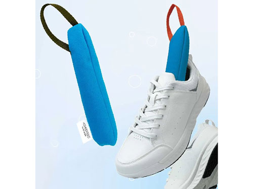 競技用のボルダリングシューズは、素足で履くのが基本だ。そのため汗がこもりやすく、つま先まで細い構造のため、市販の乾燥剤では奥まで届かず、蒸れも臭いも取り切れないという。