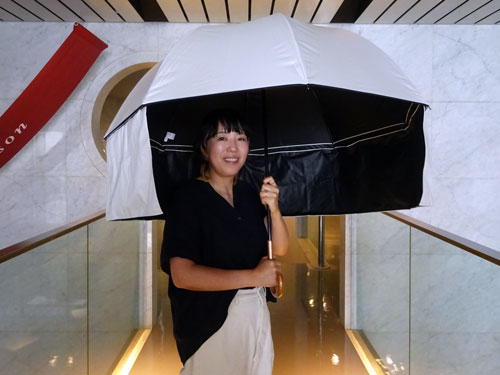 「ジャンボ長日傘」は、アウトドアやスポーツ観戦が趣味のベルメゾン事業本部ベルメゾンビジネスユニットファッション企画・開発チームの川俣美樹子氏が開発を手がけた。